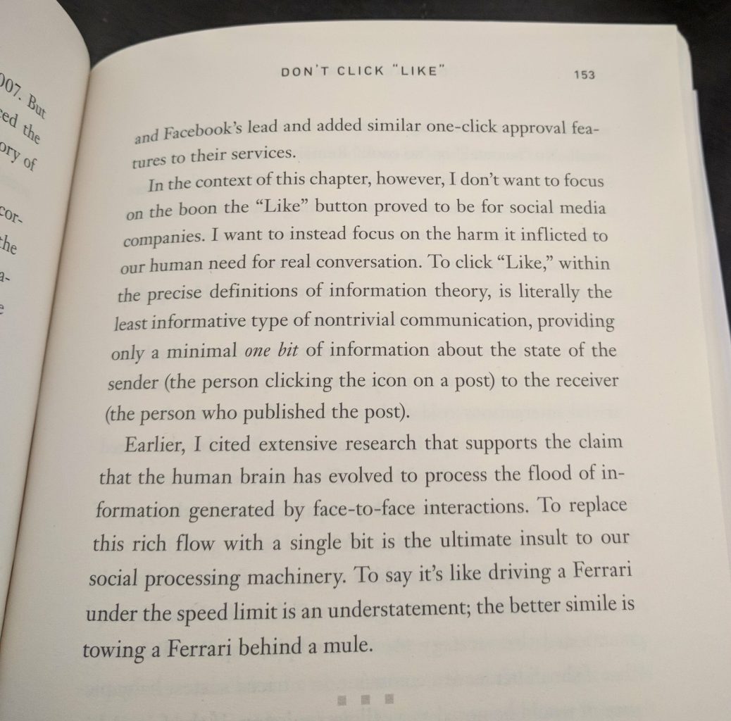 Other essayists have made the excellent point that Twitter’s entire product was the content moderation. People for the most part hang out on Twitter because they can closely associate for the most part with the people they want to hang out with. If that weren’t true, you wouldn’t value it. And of course, it’s swung back and forth over time.